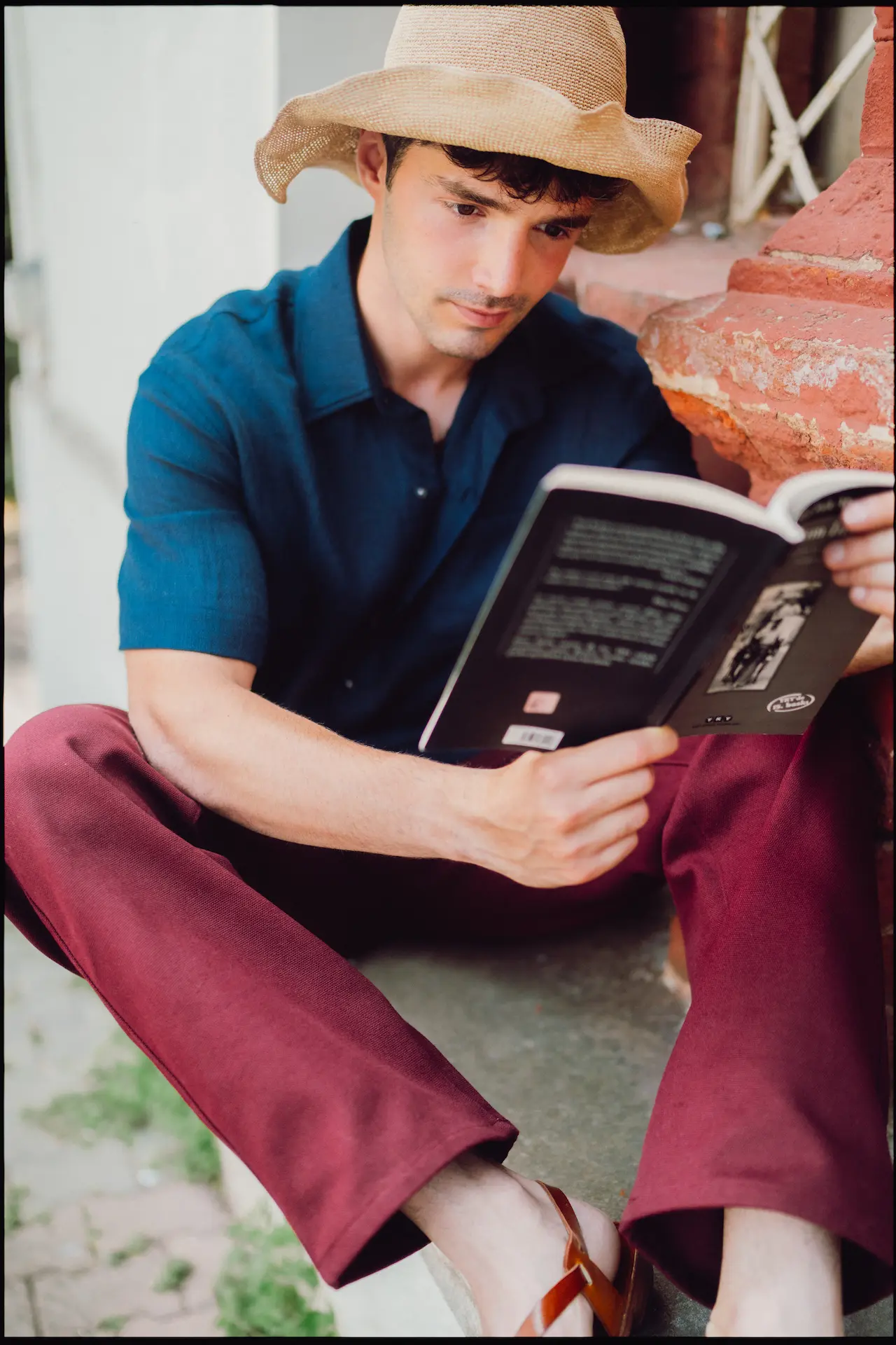 Crisp burgundy colored canvas fabric with our details.